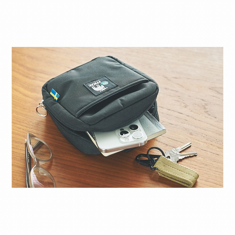 ブランドアイコンであるヘラジカのエルクで親しまれるスウェーデン生まれのMOZによる、リサイクル素材を使用したサステナブルライン「GO GREEN MOZ」のマルチポーチです。