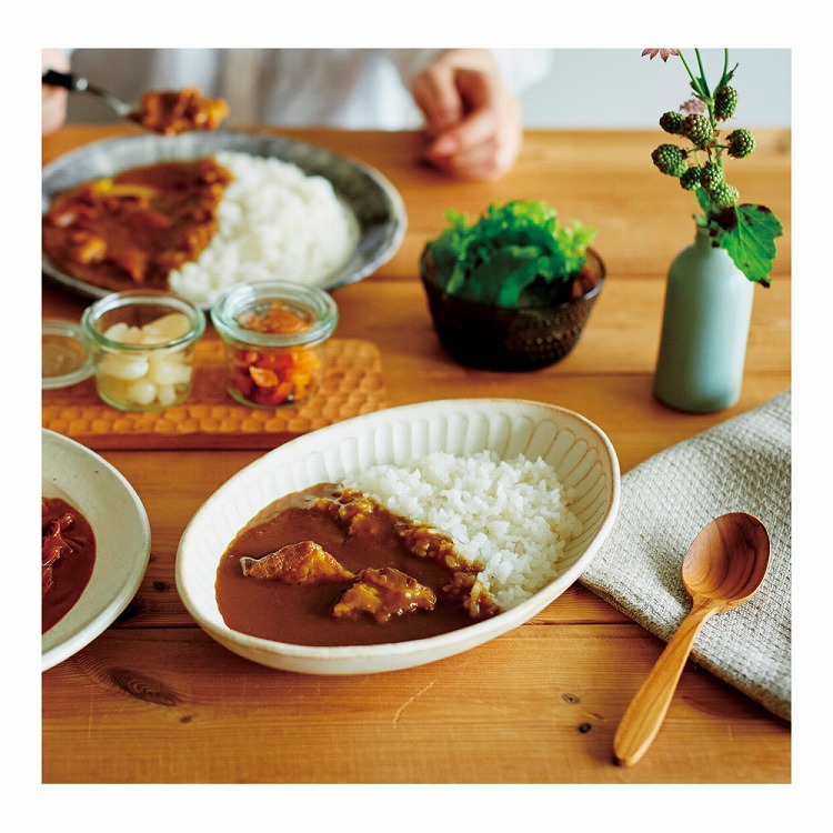 和の調味料でどなたにでも親しみやすい豚の角煮カレーと梅しそキーマカレーと、3種類のバラエティ豊かなスープをセットにしました。