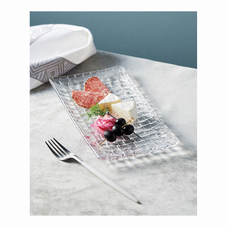 前菜やお刺身、パーティーの盛皿としてもお使いいただけるシンプルなガラス製のプレートです。