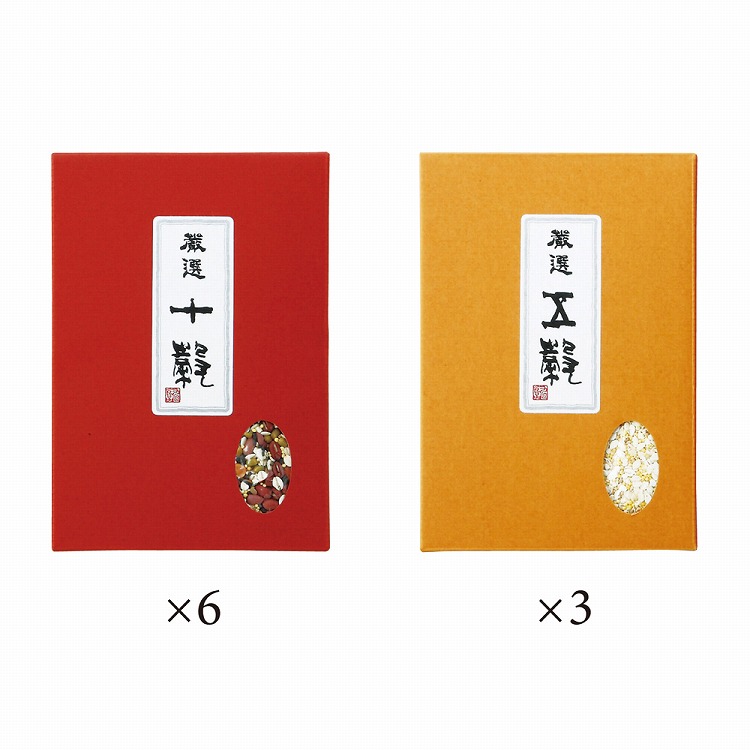 3種類の豆と7種類の雑穀をブレンドした「十穀」と大麦などが入った「五穀」をセットにしました。