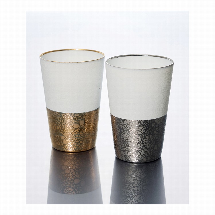美濃焼職人の技術により磁器を極限までうすく成形し、金とプラチナで装飾した軽いタンブラー。
