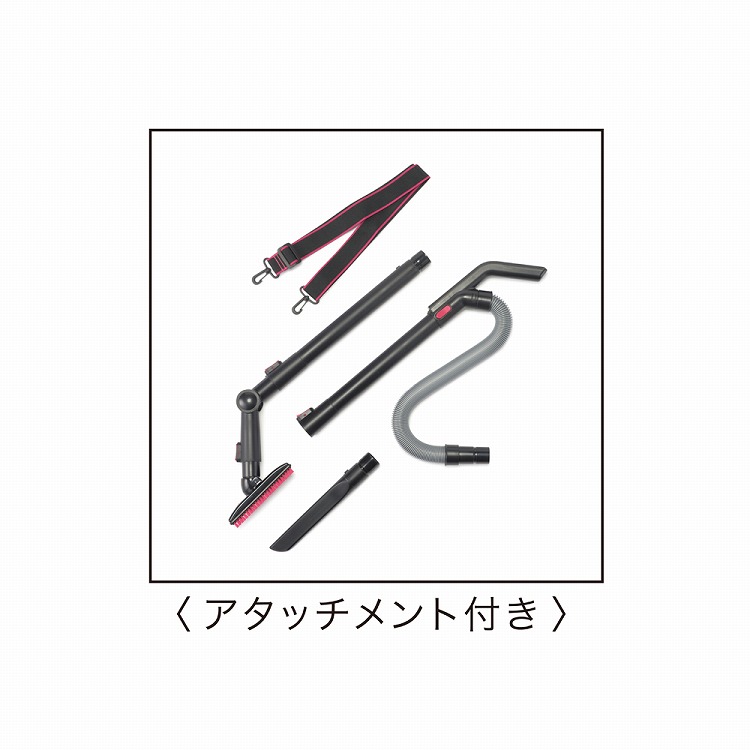 ●内容:サイクロン方式・吸込仕事率約200W・マルチソフトブラシ・床用吸込口(タービンブラシ)・延長パイプ×2・すき間ノズル・ブロワカバー・ショルダーベルト・伸縮ホース(ハンドル付)・関節ジョイント・アタッチメント収納袋付