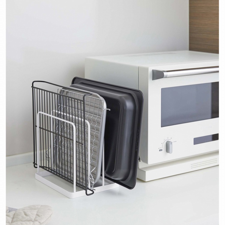 置き場所に困るトレーやオーブンの天板、ホットプレートの替え天板等を収納できます。