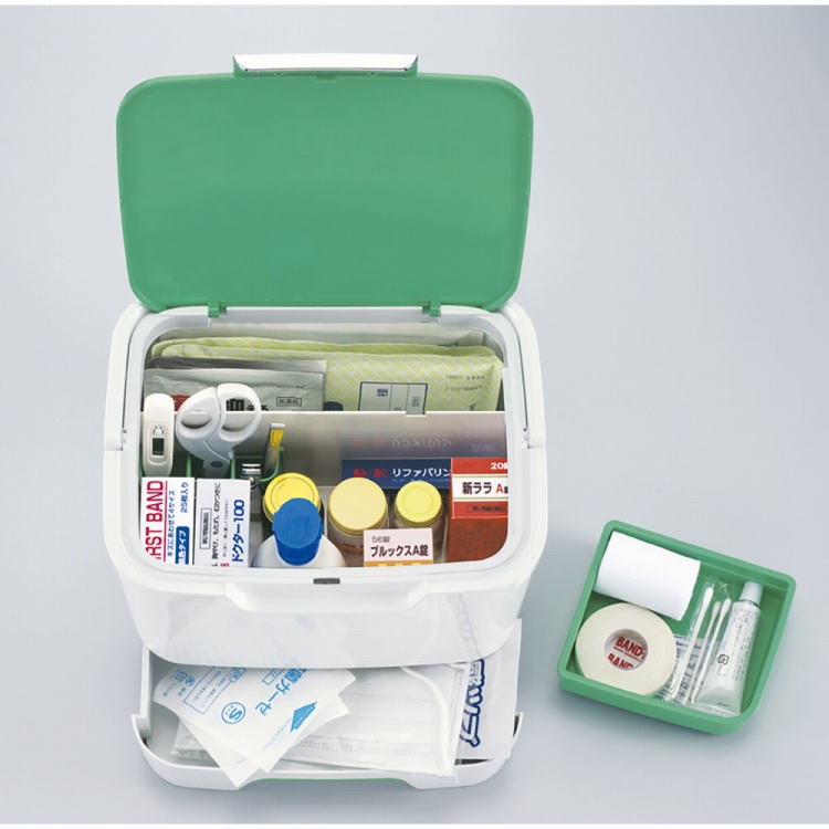 薬や湿布などをひとまとめに収納でき、必要なものがすぐに取り出せる救急箱です。