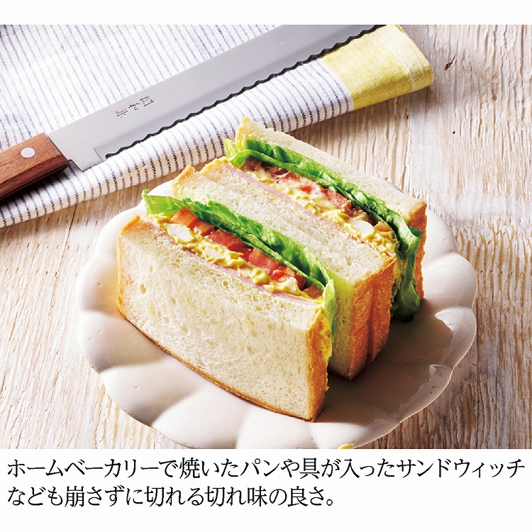 ホームベーカリーで焼いたパンや具が入ったサンドウィッチなども崩さずに切れる切れ味の良さ。