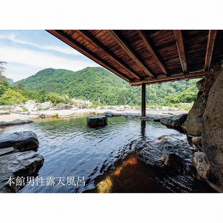 眼下に広がる阿賀野川と四季折々の表情を見せる山々を眺めながら、豊かな湯量の源泉でゆとりのひとときを存分にお過ごしください。