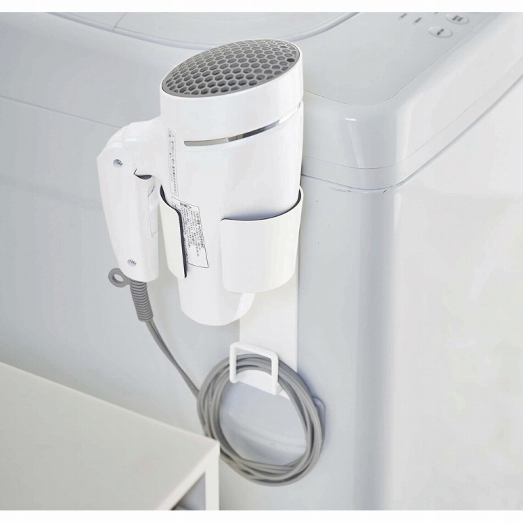 収納場所に困るドライヤーをマグネットで洗濯機横に収納可能。