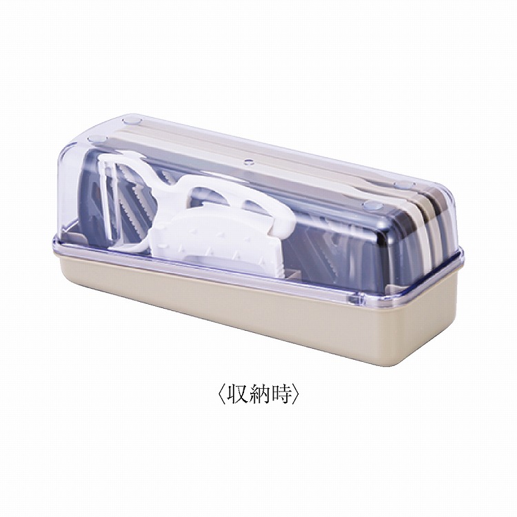 商品内容●商品:収納ケース(約8.5×23.5×高さ8.8cm)・調理板(スライス・おろし・千切り・つま切り)・ピーラー・ホルダー各1