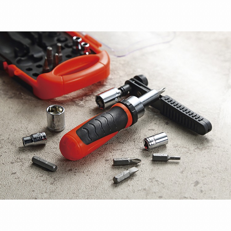 ●内容:6.35mm角ソケット×9・ドライバービット(+・-)×5・六角ビット×4・ラチェットドライバーハンドル・マルチラチェットハンドル・ソケットアダプター各1