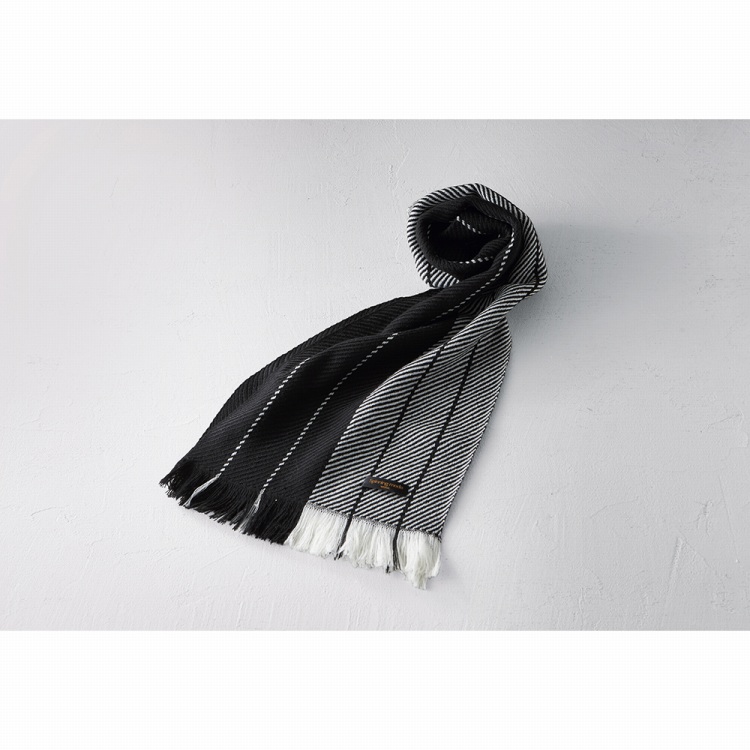 大正時代の豊田式自動織機でゆっくりゆっくりと丁寧に織り上げた上質なマフラー。