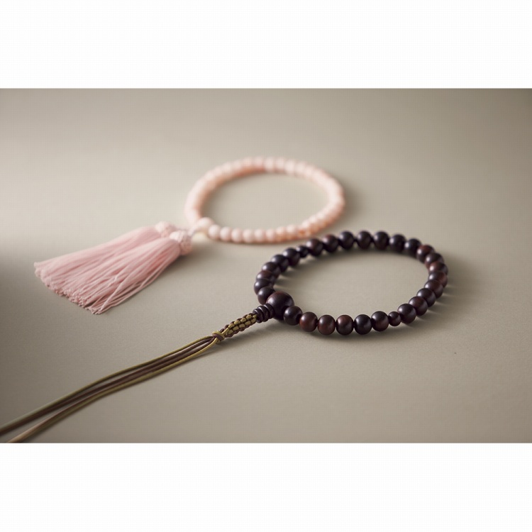 葬儀、法要などでは、念珠を持つことが礼儀とされ、身だしなみのひとつとして用意しておきたい弔事のアイテムです。