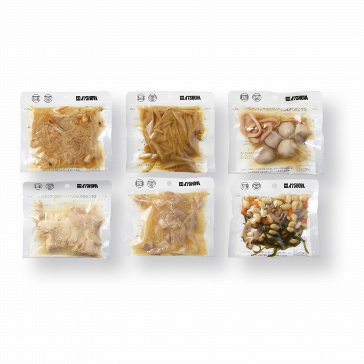 商品内容●セット内容:切干大根100g・ごぼう金平100g・いか小芋100g・鶏みぞれ煮100g・豚肉と大根の味噌煮100g・大豆五目煮100g各1