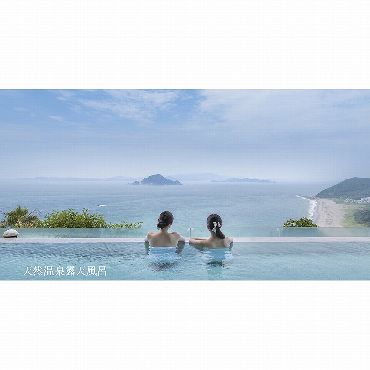 浴場が海へ流れ続くようにデザインされた天然温泉露天風呂では、島々と行き交う船、沈みゆく夕日など、刻々と変わる景色をお楽しみいただけます。