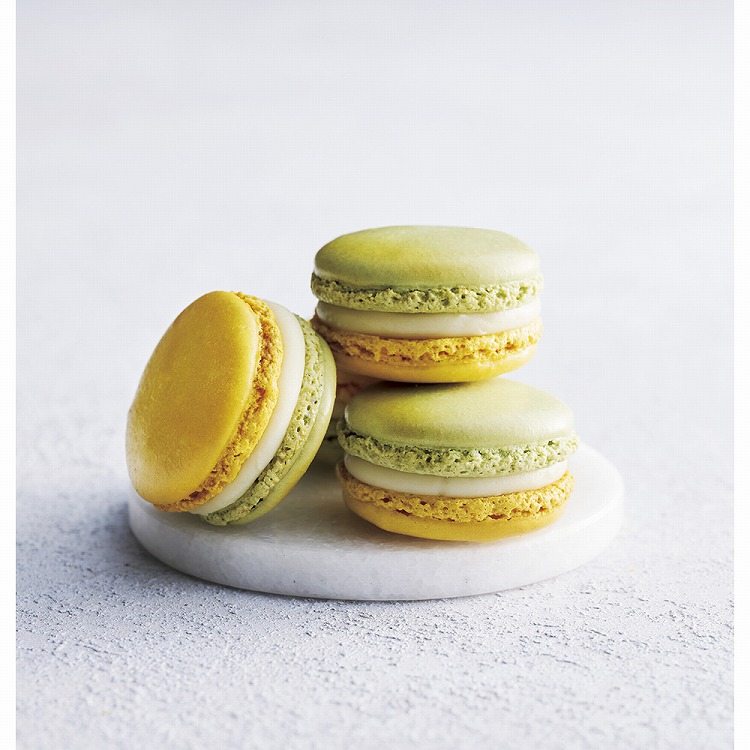 豊かな甘みと芳香が特徴の新潟県産ル レクチェをはじめ、バラとライチとフランボワーズを組み合わせたスペシャリテ「イスパハン」など、カラフルで華やかな5種のマカロンを詰め合わせました。