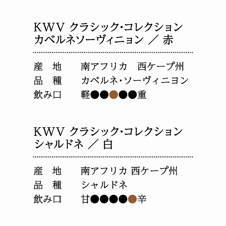 商品内容●KWV クラシック・コレクション カベルネソーヴィニョン750ml、KWV クラシック・コレクション シャルドネ750ml、ソムリエナイフ付