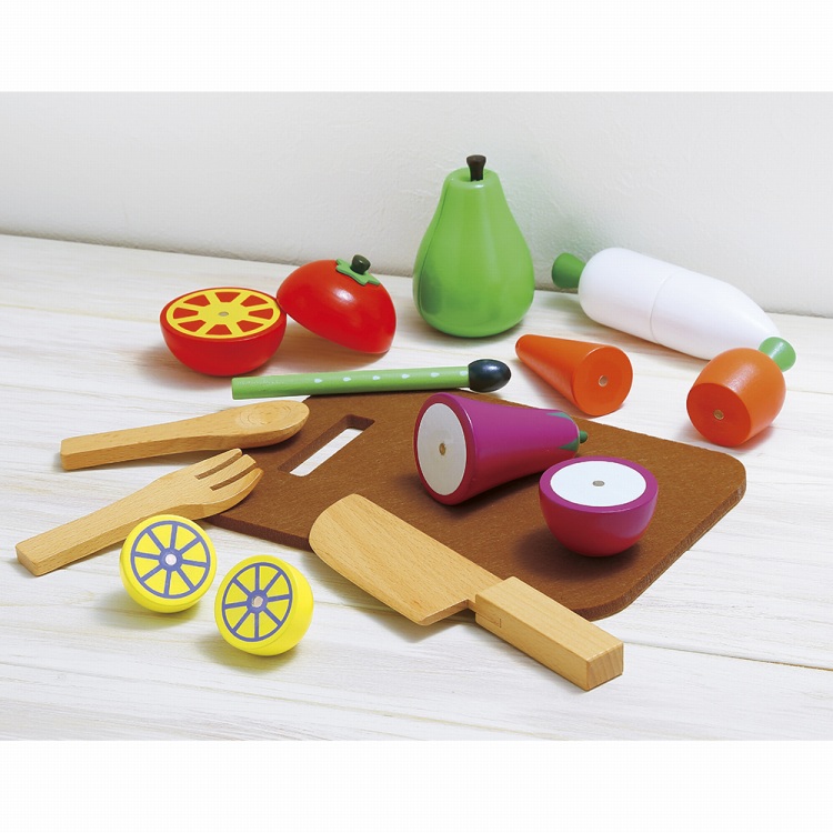 ●内容:トマト・レモン・洋ナシ・にんじん・なす・アスパラ・だいこん・スプーン・フォーク・包丁・まな板各1