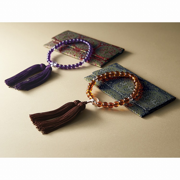 葬儀、法要などでは、念珠を持つことが礼儀とされ、身だしなみのひとつとして用意しておきたい弔事のアイテムです。