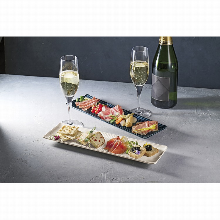 シンプルなデザインの長角皿は和洋問わず、いろいろな料理の盛り付けに活躍。