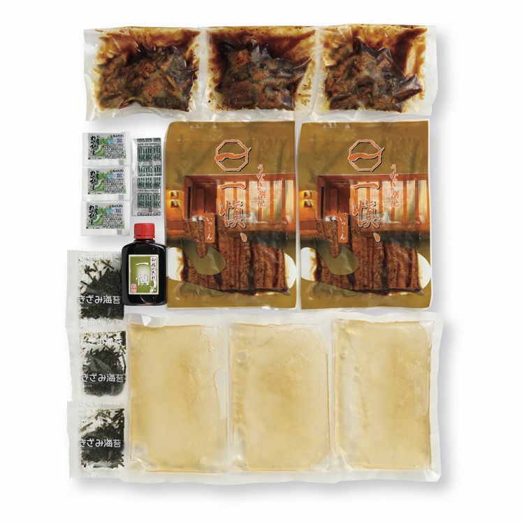 商品内容●セット内容:うなぎ蒲焼55g×2、刻みうなぎ45g×3、吸い地(だし)・刻みのり・わさび・タレ・山椒付