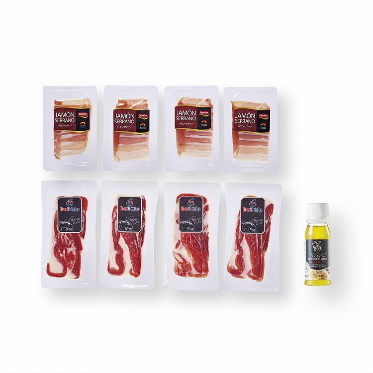 商品内容●セット内容:ハモンセラーノ30g・パレタイベリカ デ セボ30g各4、白トリュフフレーバーエクストラバージンオリーブオイル18g(20ml)×1