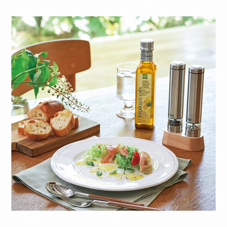 口当たりのなめらかな有機エクストラバージンオリーブオイルとフルーティーなテイストのレモンフレーバーのセット。
