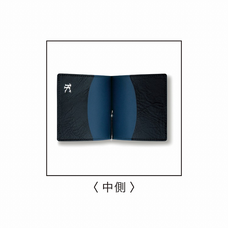 自然な風合いを活かした革を表革に使用し、裏にはネイビーの革を使用しています。