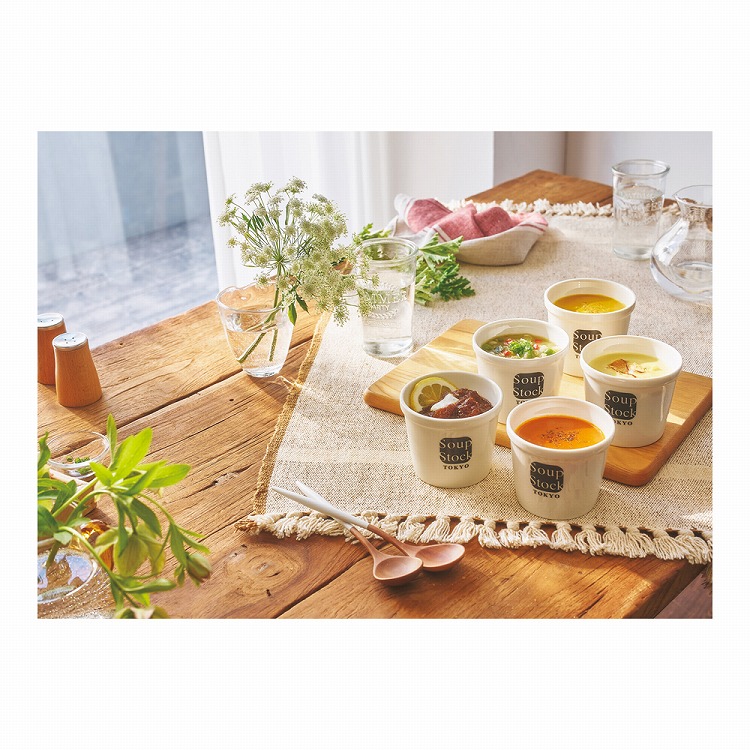 Soup Stock Tokyoは「食べるスープの専門店」です。 私たちの理念は「世の中の体温をあげる」です。忙しく過ぎていく日々の中でも、自分を大切に、優しい気持ちで一日をすごしてほしい。誰かと比べられることがあっても、その素敵な個性をすり減らすことなく、生き生きと暮らしてほしい。私たちは、一杯のスープにそんな願いを込めて、あなたと、あなたの先に広がる人々の心の体温をあげていきたいと思います。 看板商品である「オマール海老のビスク」は、メニュー開発当時からまだあまり使われていなかった“もったいない食材”、「オマール海老の頭」を使ってだしをとっています。北海道産のスイートコーンと国産のさつま芋を使用した「とうもろこしとさつま芋のスープ」は、素材の優しい甘さが自慢です。大切につくられたスープで、ご自身にもギフトを。日々のちょっとしたご褒美で、心の体温があがりますように。