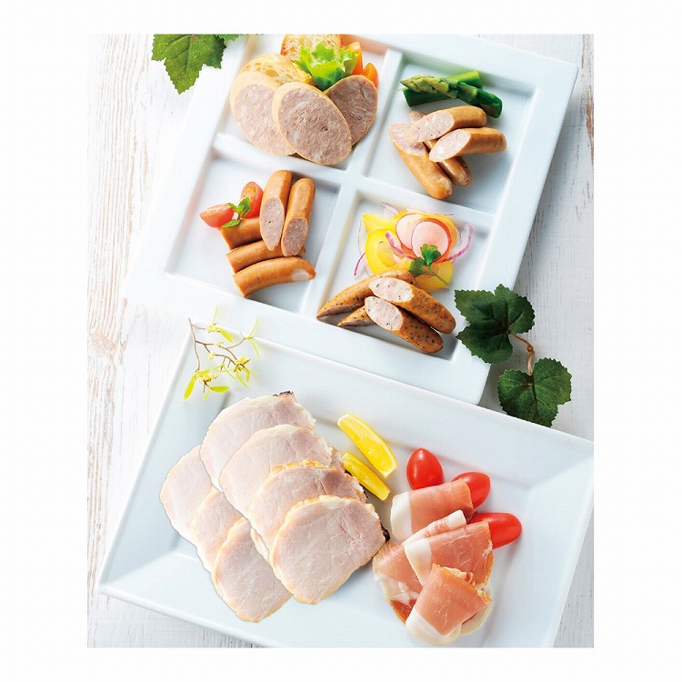 ローストポークと、素材の味を楽しめる札幌バルナバハムの無塩せきハムや、ウインナー、ベーコンなどの詰め合わせです。