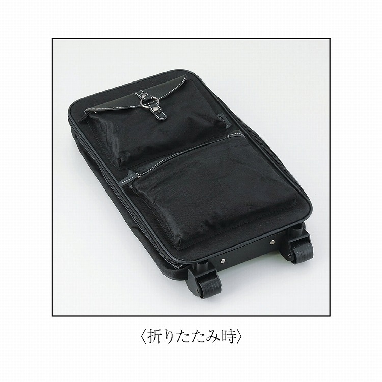 ●内容:前面/ファスナーポケット・マグネット式かぶせ付ファスナーポケット各1、背面/ファスナーポケット×1、荷崩れ防止ベルト・2輪キャスター付・ハンドル伸縮式、開閉部ファスナー式、ネームホルダー付
