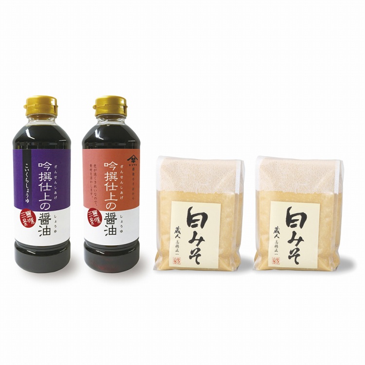 商品内容●セット内容:こいくちしょうゆ500ml・うすくちしょうゆ500ml各1、白みそ1kg×2