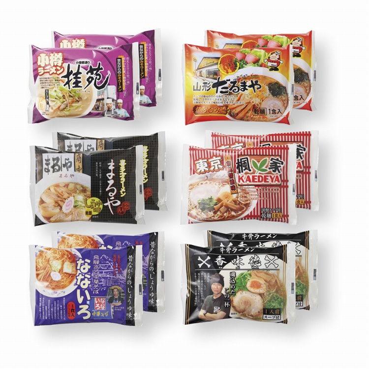 商品内容●セット内容:小樽桂苑(味噌/乾麺80g×1、スープ付)・山形だるまや(からし味噌/乾麺80g×1、スープ付)・喜多方まるや(醤油/乾麺80g×1、スープ付)・東京楓家(醤油/乾麺80g×1、スープ付)・高山なないろ(醤油/乾麺80g×1、スープ付)・鳥取香味徳(醤油/乾麺80g×1、スープ付)各2