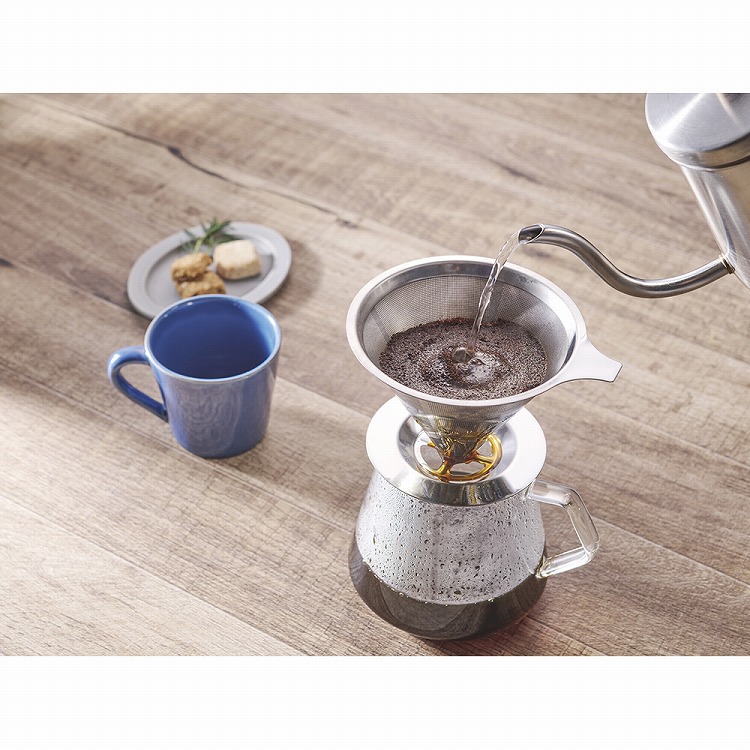 ペーパーフィルターが不要の、さびにくいステンレス製のコーヒーフィルター。