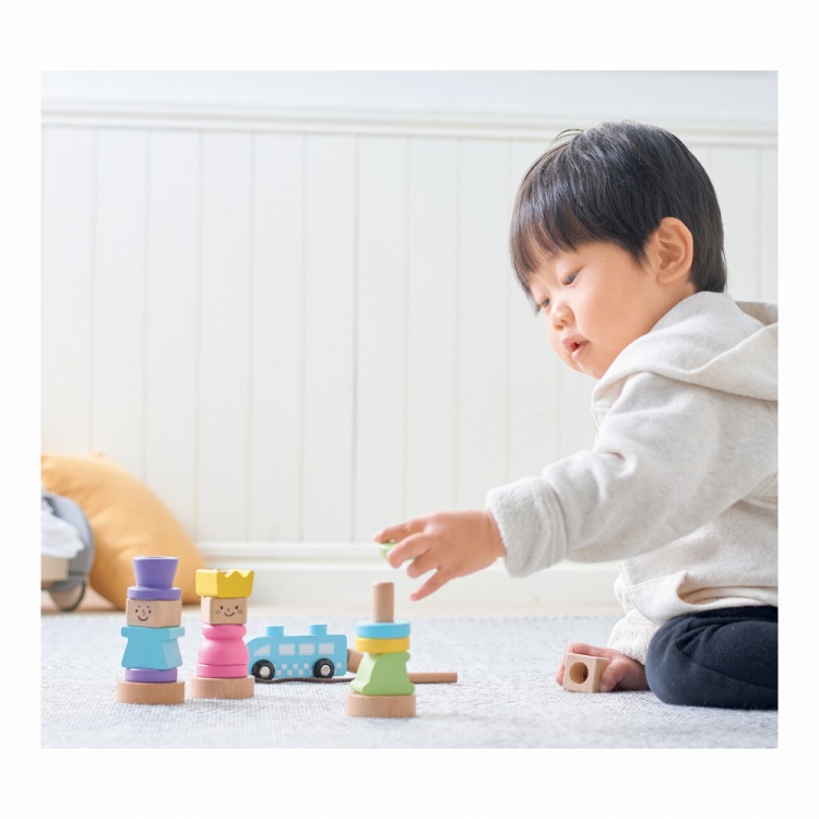 カラフルなパーツでお人形あそびやひもとおしあそびが楽しめます。