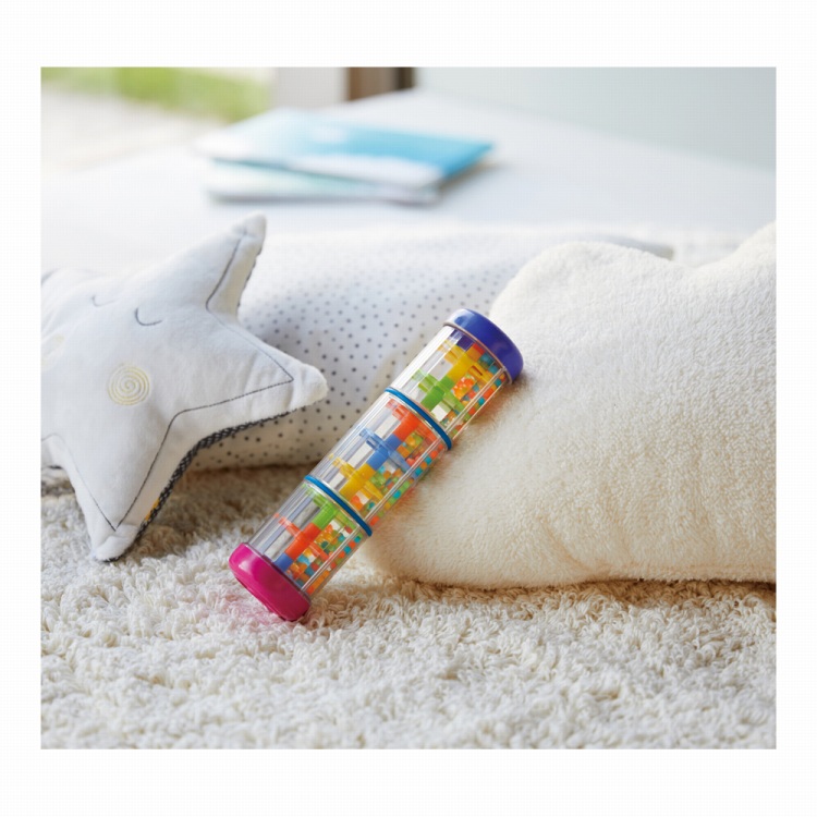 上下にひっくり返すとビーズがザザーと流れ、音と動きを楽しめる楽器です。