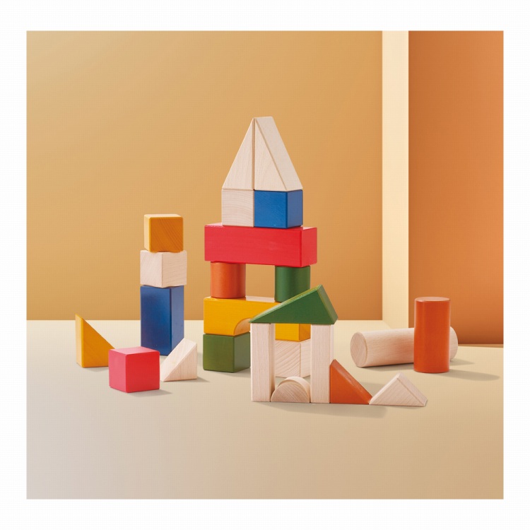 基本の形がそろったお子さまが握りやすい積み木と、指先あそびのピックアップパズルのセット。