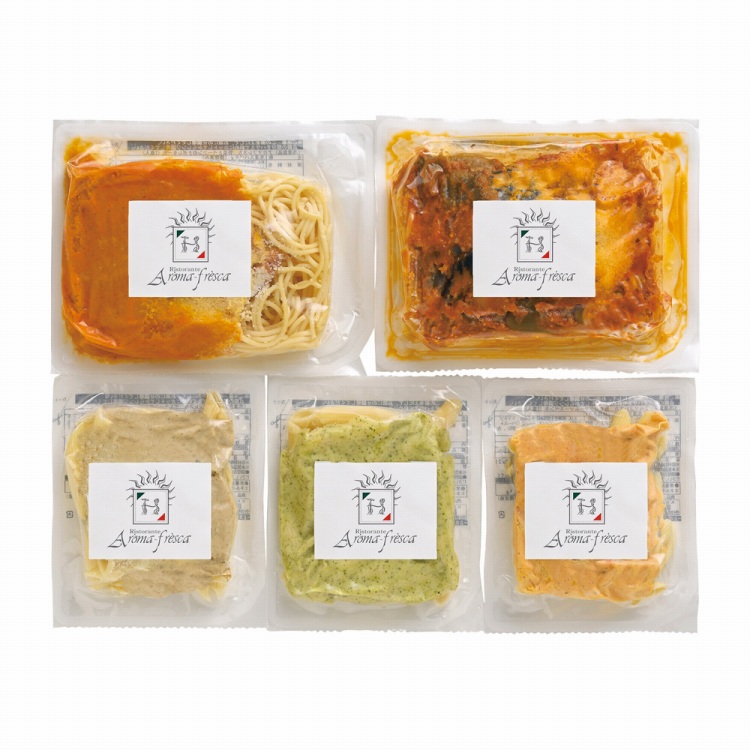 商品内容●セット内容:なすのトマトソーススパゲティ370g・野菜とベーコンのナポレターナスパゲティ310g・ペンネジェノベーゼ150g・ポルチーニのクリームペンネ140g・海老のクリームソースペンネ140g各1