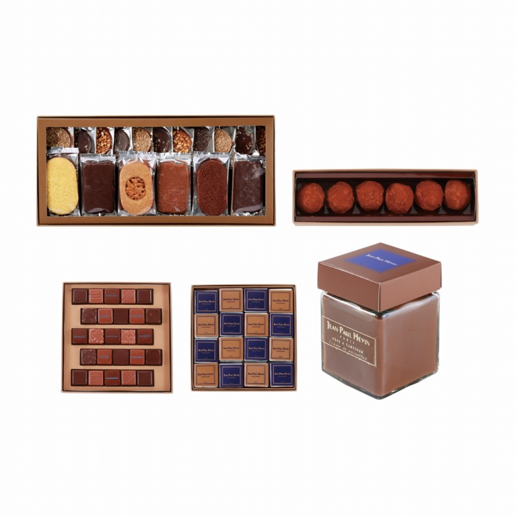 商品内容●セット内容:ボンボンショコラ(25個入)・トリュフ(6個入)・カレJPH(32枚入)・コフレゴホウビ(26枚入)・パットゥアタルティネノワゼット(ペースト)200g各1
