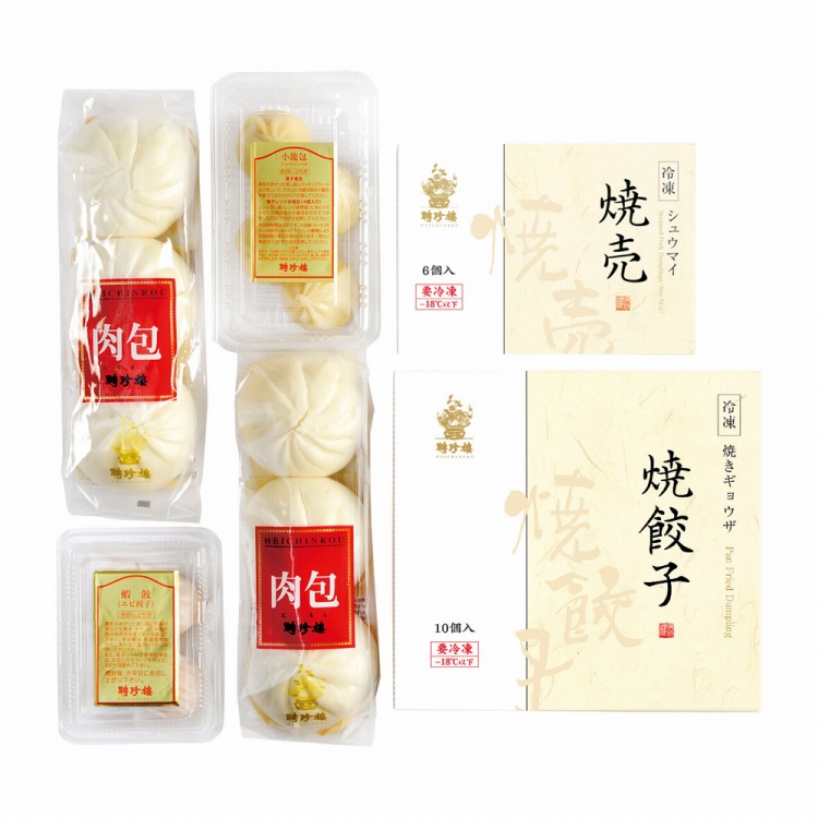 商品内容●セット内容:えび蒸し餃子20g・小籠包30g各4、肉まん60g・シュウマイ30g各6、焼餃子22g×10