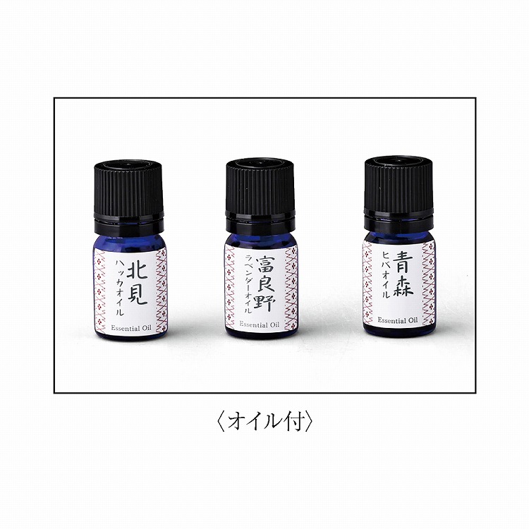 ●内容:エッセンシャルオイル5ml×3(ラベンダー富良野・北見薄荷・青森ヒバ)・USBケーブル付・連続使用時間約1〜2時間(最大水量時)