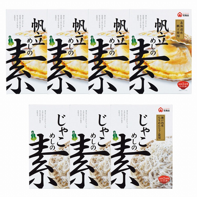 商品内容●セット内容:帆立めしの素230g(2合用)×4、じゃこめしの素230g(2合用)×3