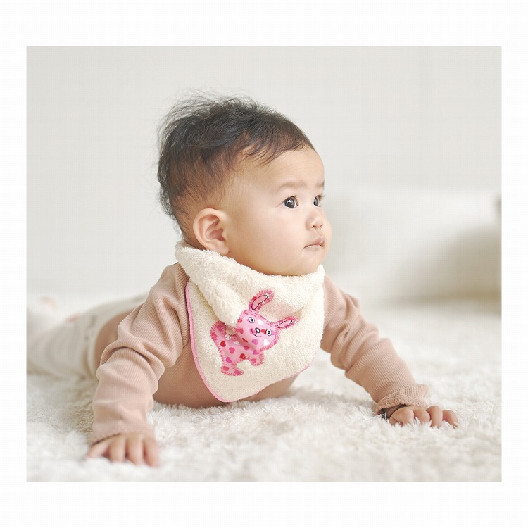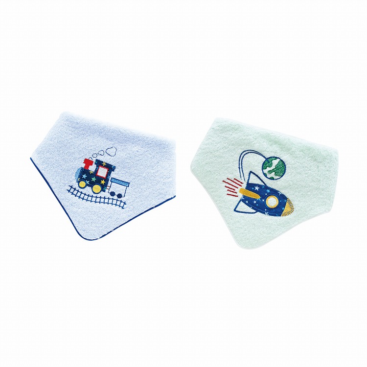 スナップを留めるとスタイ、広げるとタオルハンカチ、いろいろ使えて外出時に便利なスタイ。