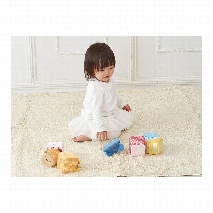 ひとつひとつから音が鳴る、やわらかな布製のつみきです。