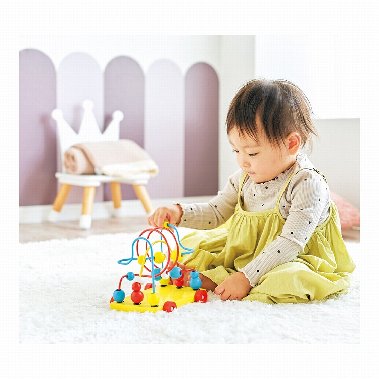 カラフルなビーズを動かしてあそぶことで、目や耳に楽しい刺激を与えながら、指先や頭のトレーニングができます。