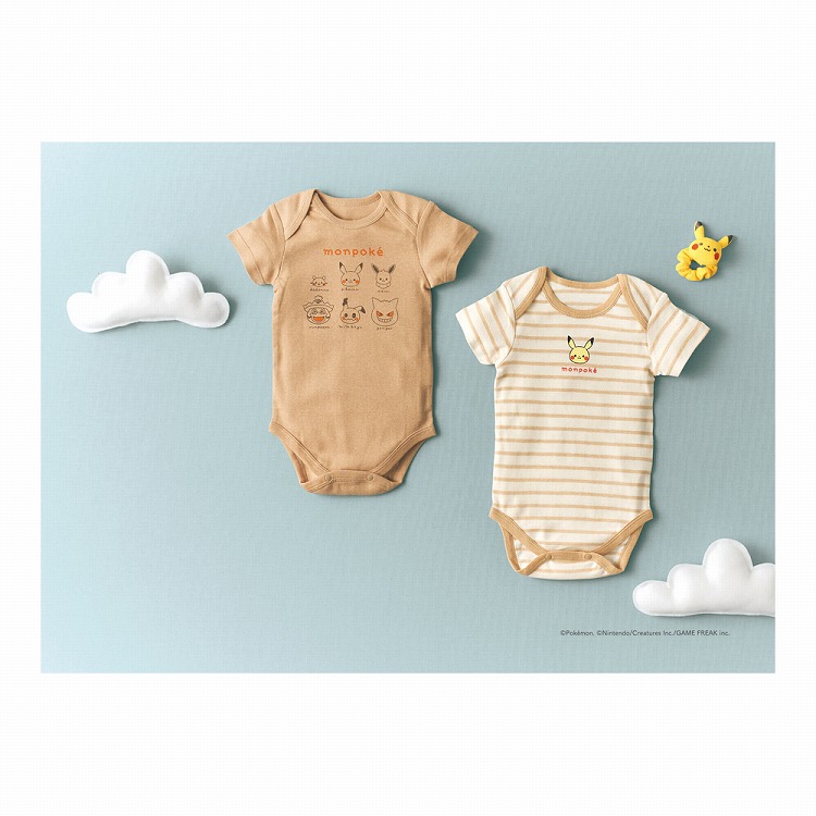 モンポケ 半袖ボディスーツ&ラトルセット