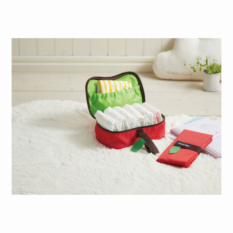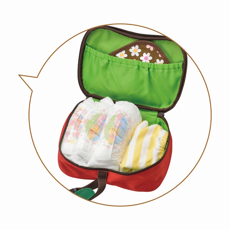 さっと広げて衛生的なシートと、おむつやおしりふきシートなどをひとまとめに収納できるファスナーポーチのおでかけ便利セット。