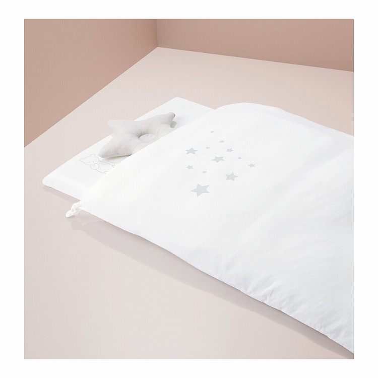 掛け布団カバーはシルバーの星がワンポイントに入ったシンプルなデザイン。