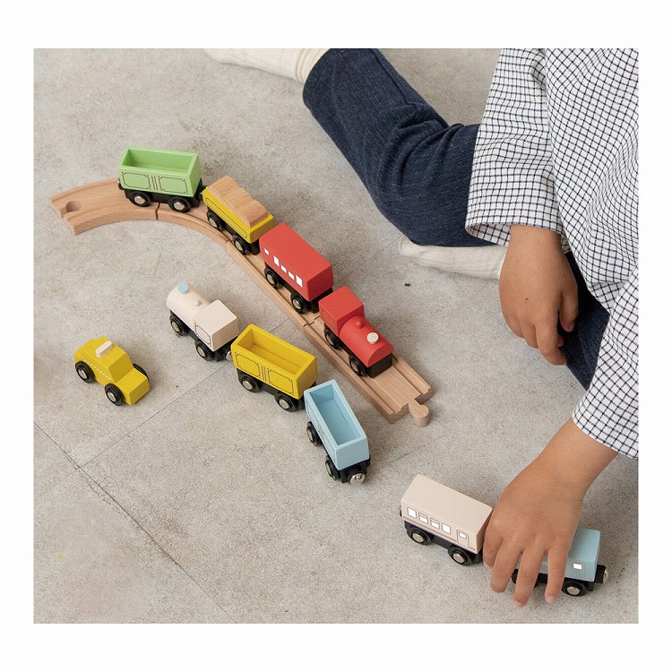 手のひらサイズの列車と車のセット。