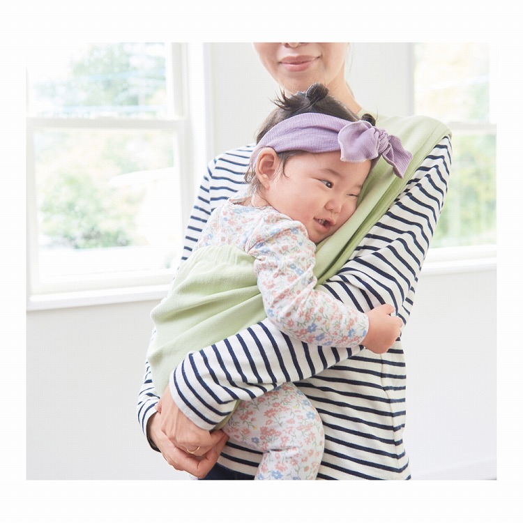 伸縮性のあるニットスリングなので、ベビーものびのび快適。
