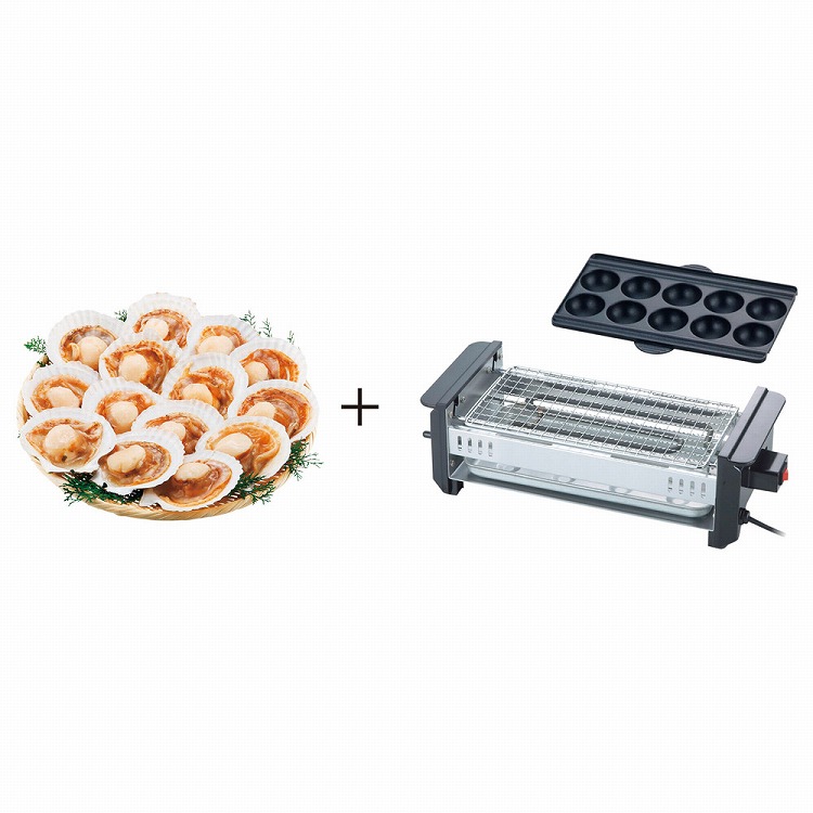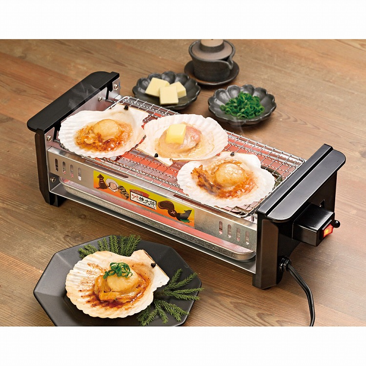 帆立片貝とワイド網焼き器