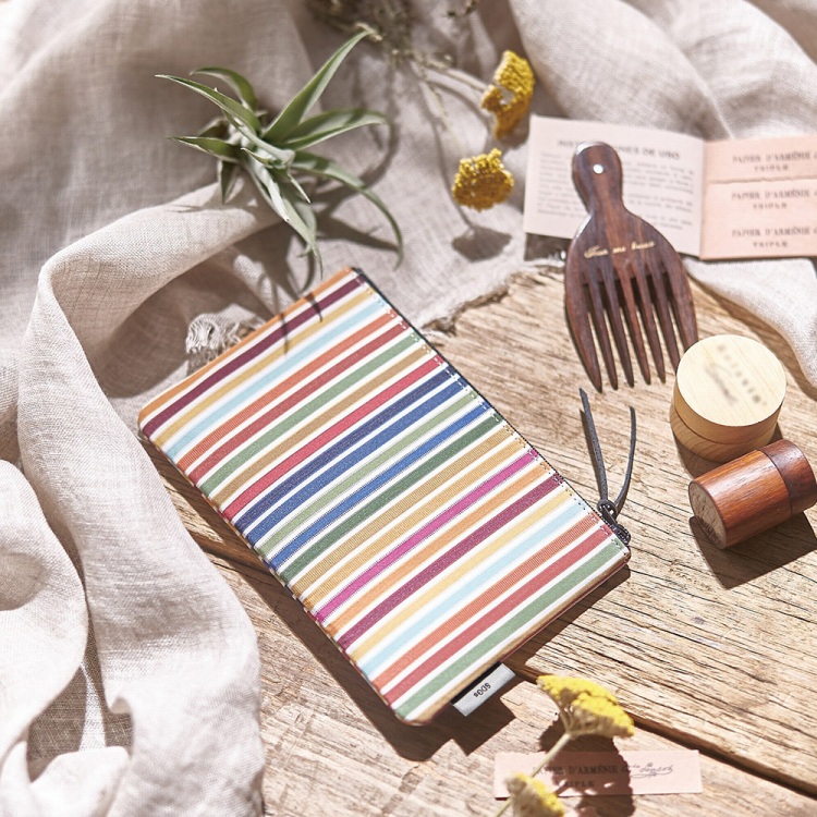 サステナブルなものづくりと世界の多様性を表現した小倉織のポーチ。